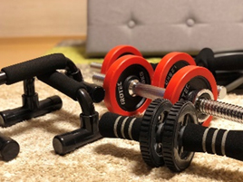 • 今、どハマりしている腹筋アブローラー。合言葉は「一日10回10セット!」。マイアブローラーは3つあります。