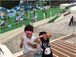 夏休み期間中の休日はほぼプールに出没しています。子供たちが「疲れたから帰りたい」とギブアップするまで遊びたおすのがモットーです。