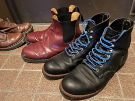 • シューズショップでも働いていました。履き方ひとつで体のバランスを整える方法等も・・・ 靴底の減り方などから体のバランスを診断することもします。 ブーツは特にレッドウィング、ウエスコ、ホワイツなどが好みです。 是非、お客様の足元自慢もお聞かせください!!