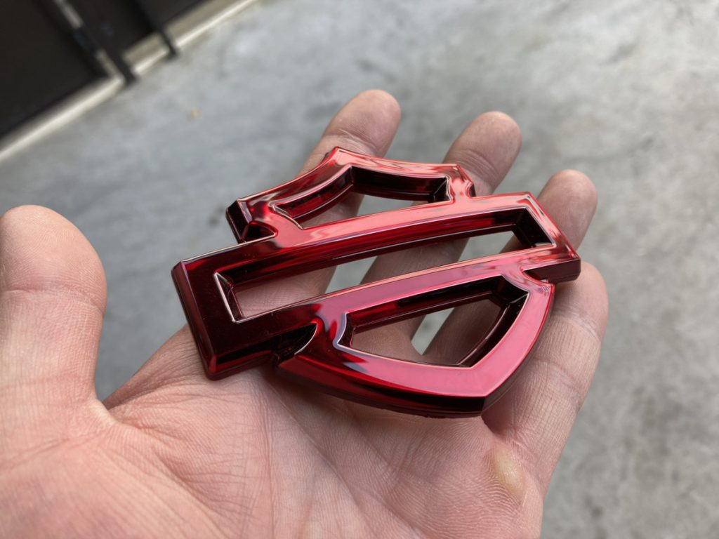 更にエンブレムも塗装で遊び心を加えています。クロムメッキの上からキャンディー系の塗料でペイントすることでガラスのような仕上がりにしています。